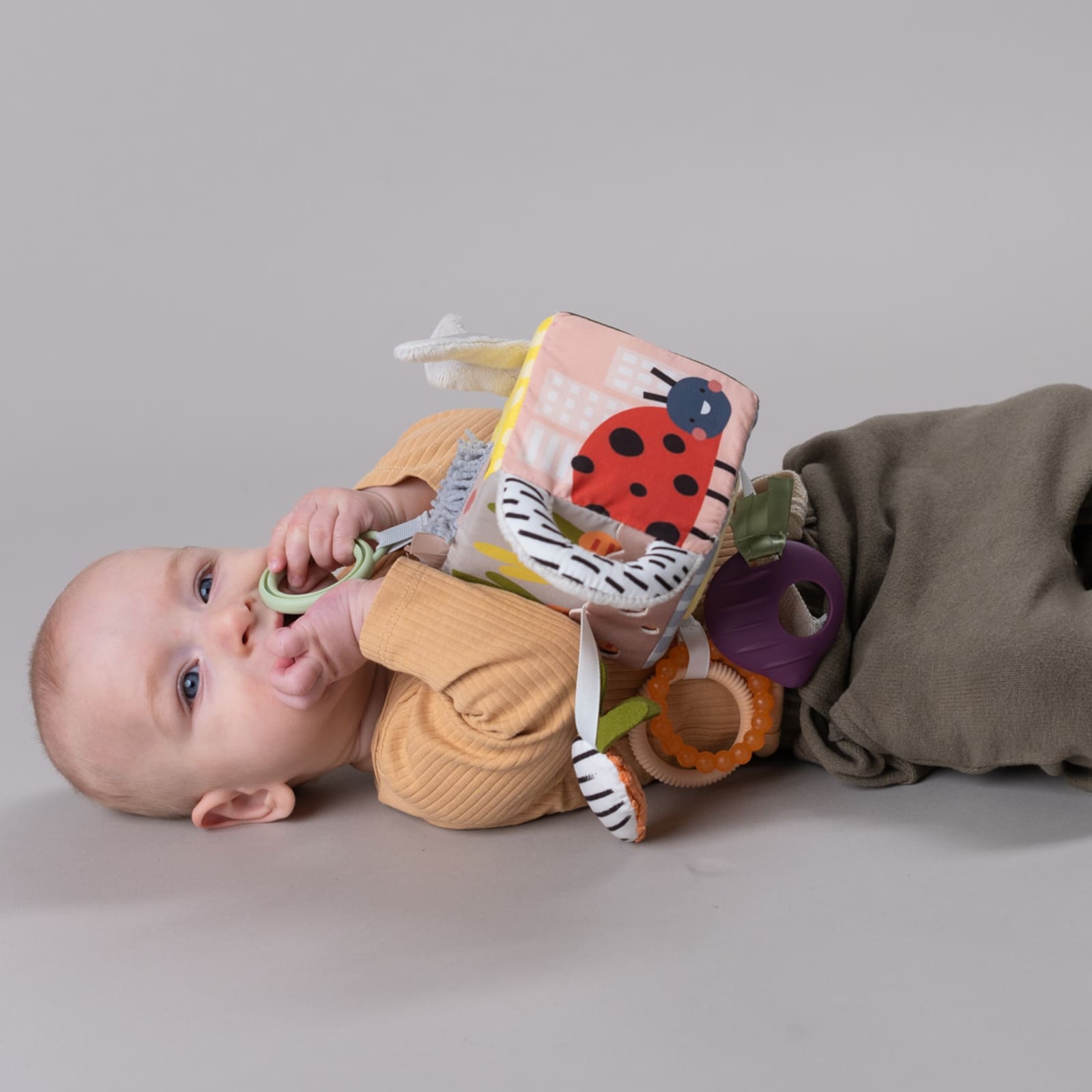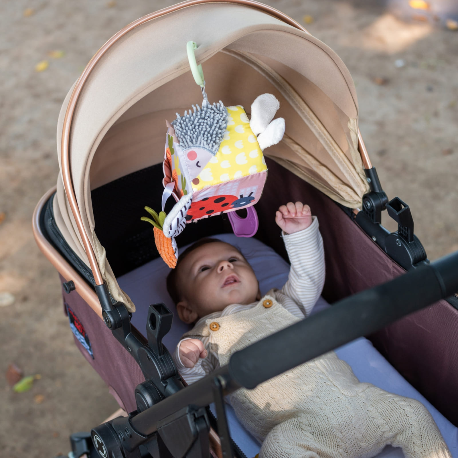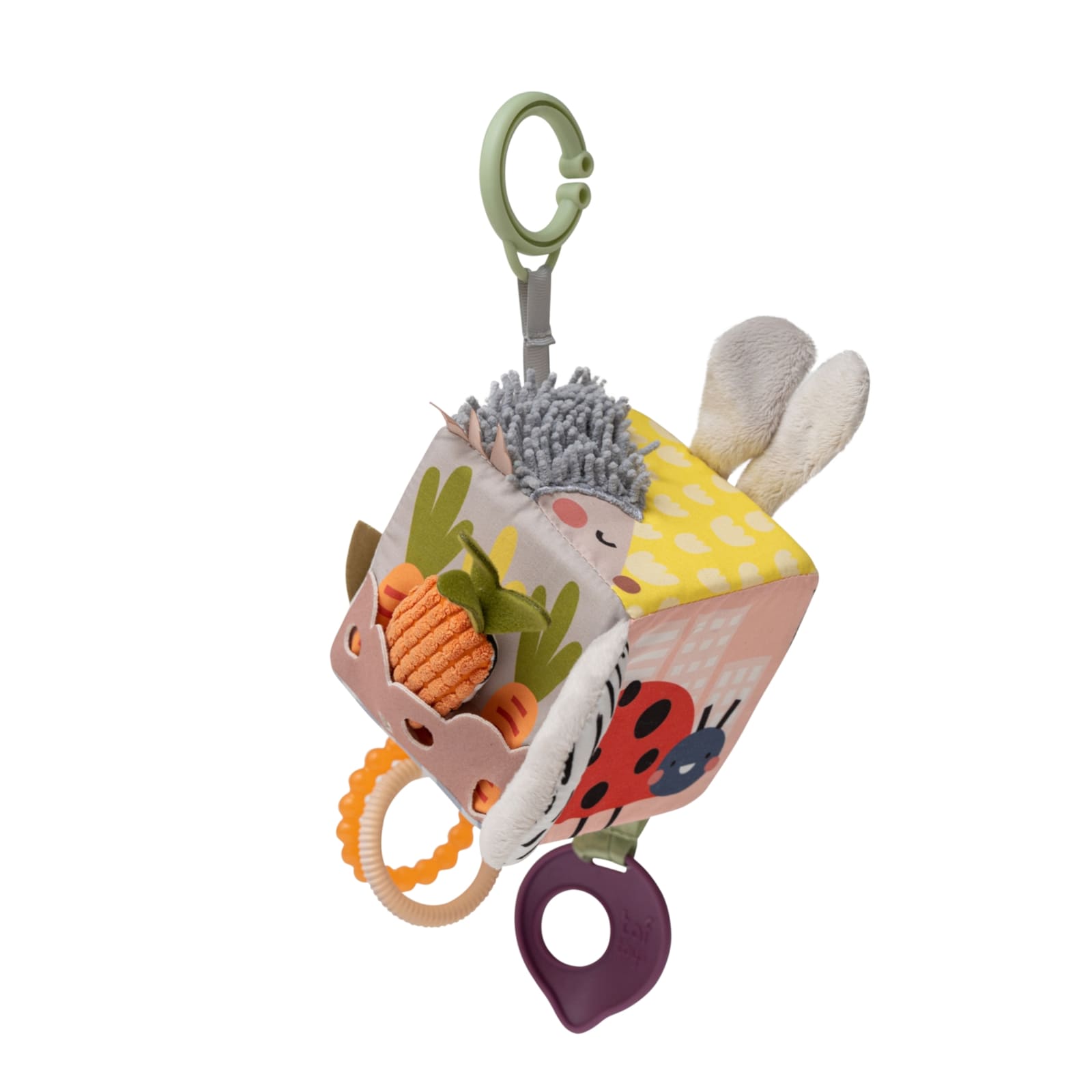 Der Aktivitätenwürfel Urban Garden lädt dein Baby dazu ein, die Welt spielerisch zu erforschen. Verschiedene Elemente wie Tastflächen, Rasseln und bewegliche Teile bieten abwechslungsreiche Reize, die von Anfang an Interesse wecken.