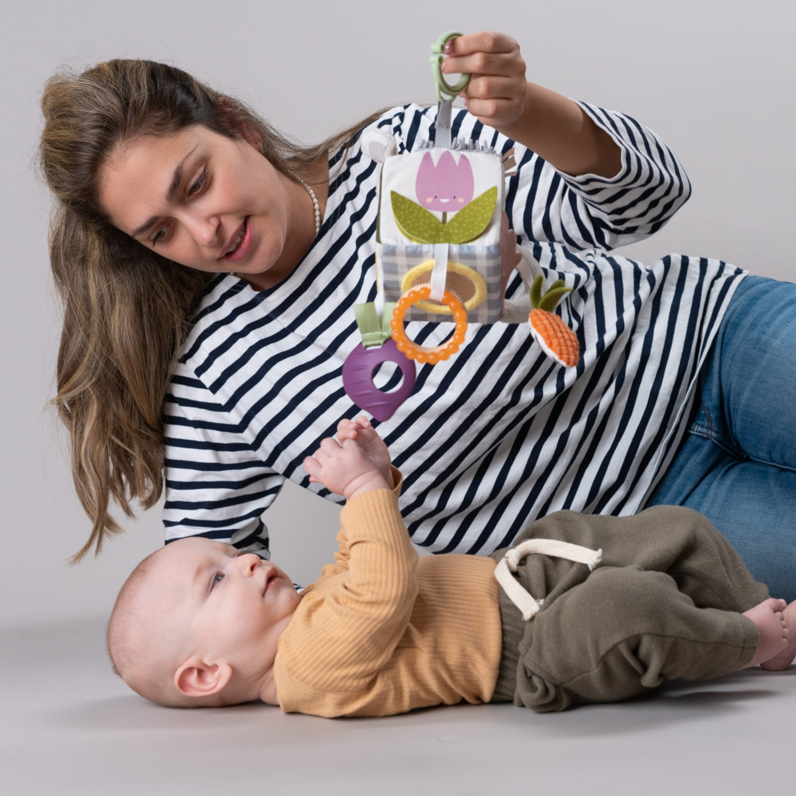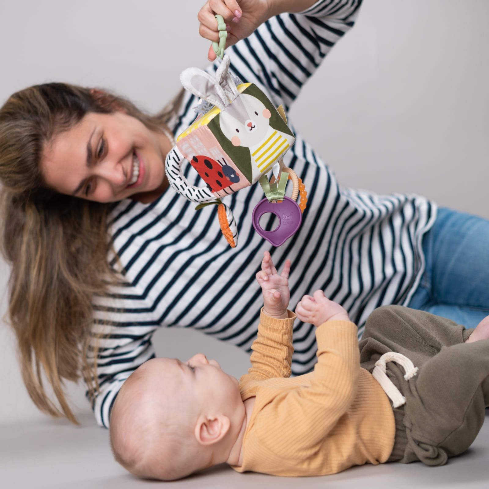 Farben, Kontraste und sanfte Geräusche stimulieren die Sinne und fördern das Lernen von Ursache und Wirkung – wichtige Grundlagen für die kognitive Entwicklung.