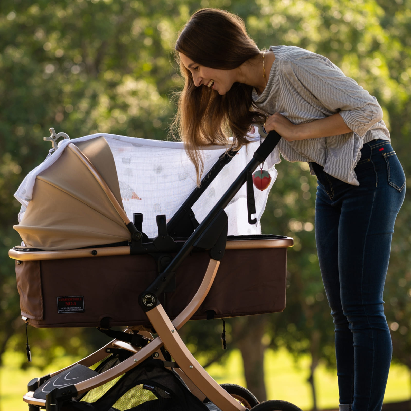 Alle Teile sind leicht und kompakt, sodass sie problemlos in der Wickeltasche oder am Kinderwagen Platz finden. Die zwei Clips helfen zusätzlich, Tücher oder Spielzeug sicher zu befestigen, damit nichts verloren geht.