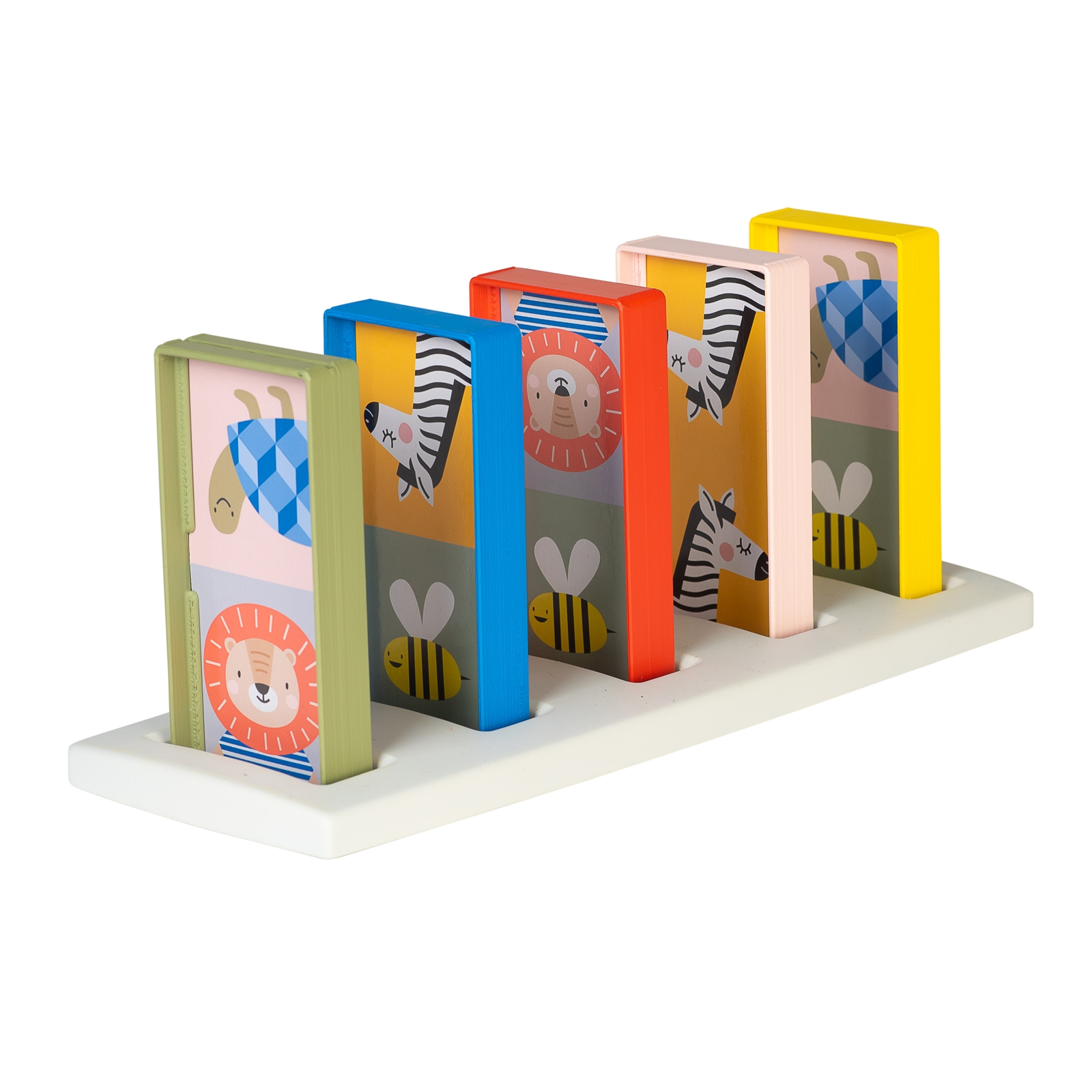 Das Set enthält zehn grosse, leicht greifbare Dominosteine und eine robuste Unterlage, speziell gestaltet für kleine Hände. Die farbenfrohen Motive regen zum Entdecken an und machen den Einstieg ins Spielen leicht und sicher. Perfekt, um spielerisch erste Regeln, Farben und Formen kennenzulernen.