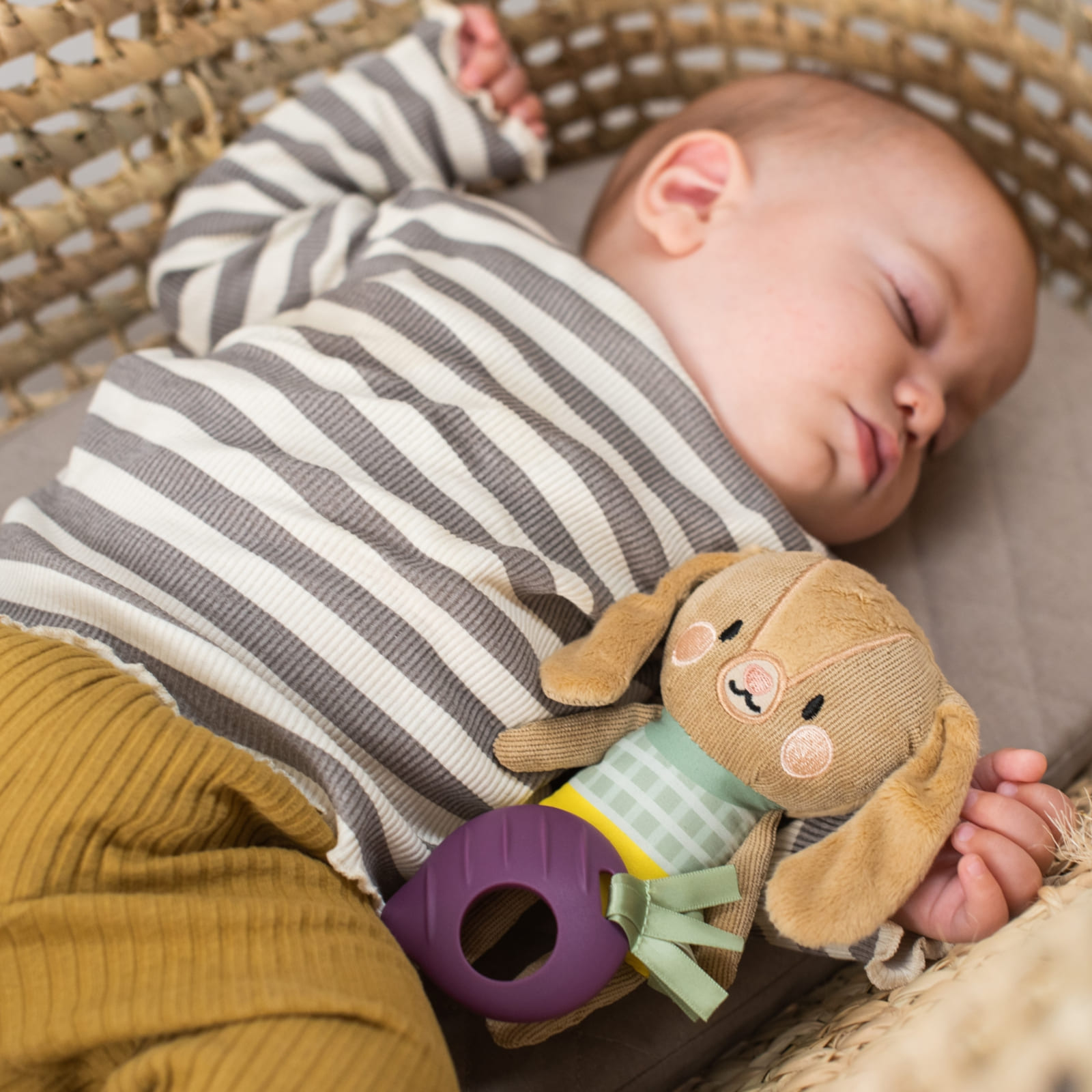 Die TAF-TOYS Rassel in Form des niedlichen Hasen Jenny ist ideal für Neugeborene ab 0 Monaten. Das kompakte Format liegt gut in winzigen Händen und lädt zum Greifen, Schütteln und Entdecken ein.