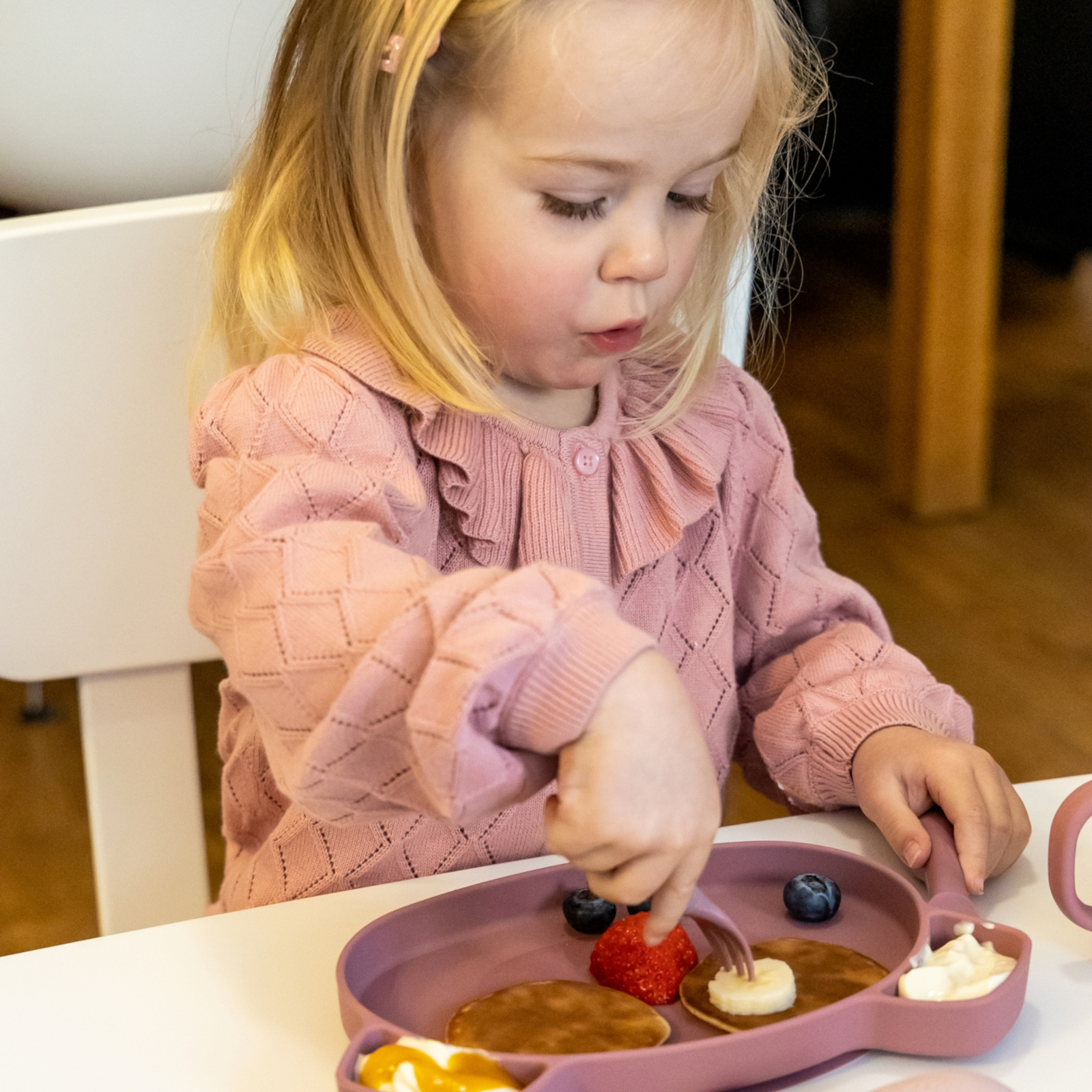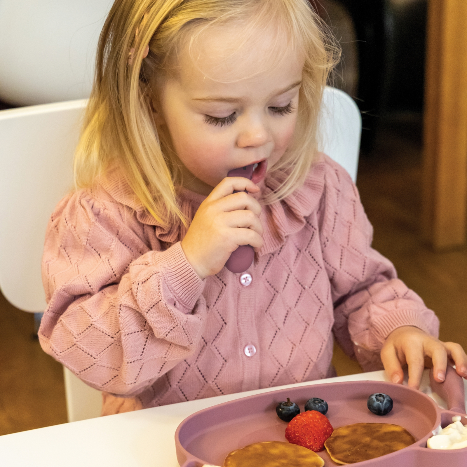 Durch die kindgerechte Form unterstützt das Besteck intuitiv das Greifen und Halten. Das erleichtert die ersten Essversuche und sorgt für mehr Selbstvertrauen und Spass am Tisch.