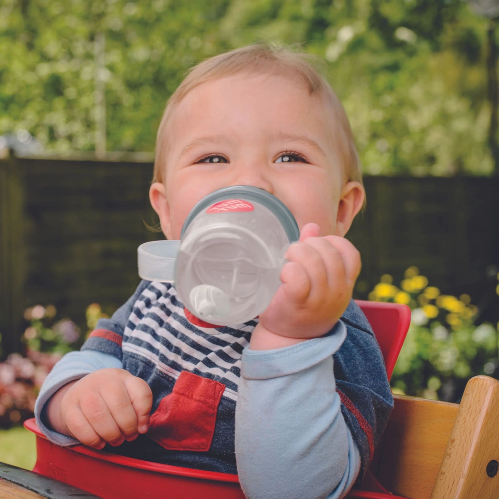 Der TUM TUM Trinkbecher verfügt über einen beschwerten Strohhalm, der der Flüssigkeit stets folgt. So kann dein Kind aus jedem Winkel trinken, ohne den Becher perfekt kippen zu muessen – ideal für unterwegs und beim Spielen.