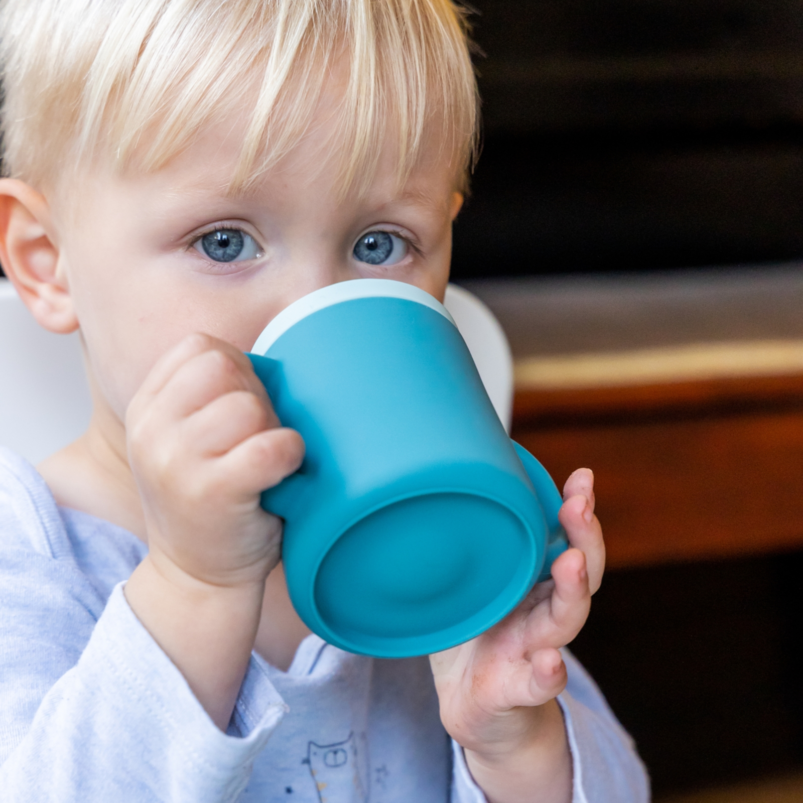 Der Becher motiviert zum selbstständigen Trinken und erleichtert dir den Alltag beim Übergang von Flasche oder Stillen zur Tasse.