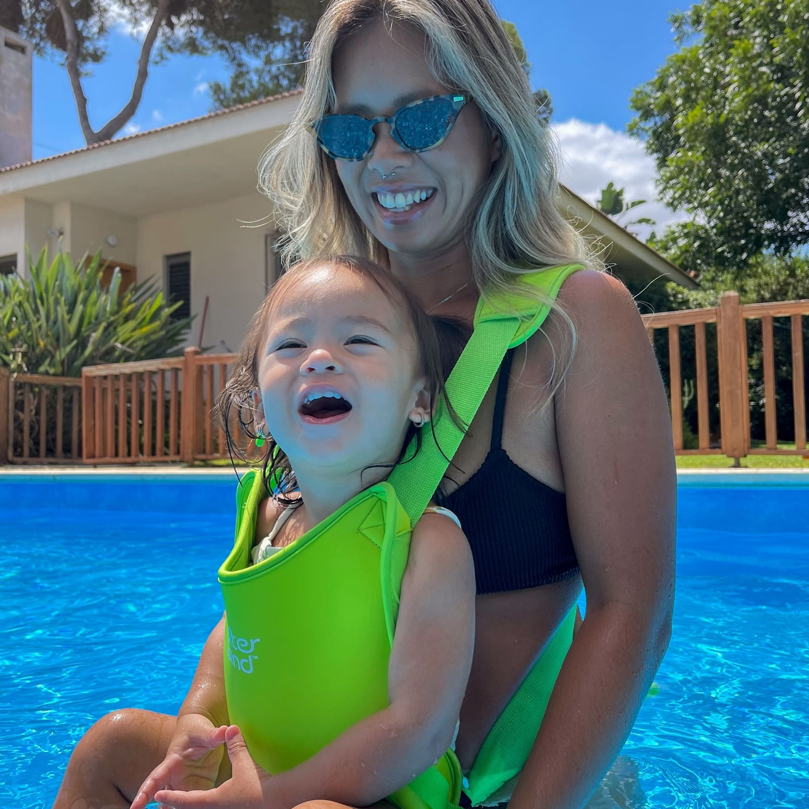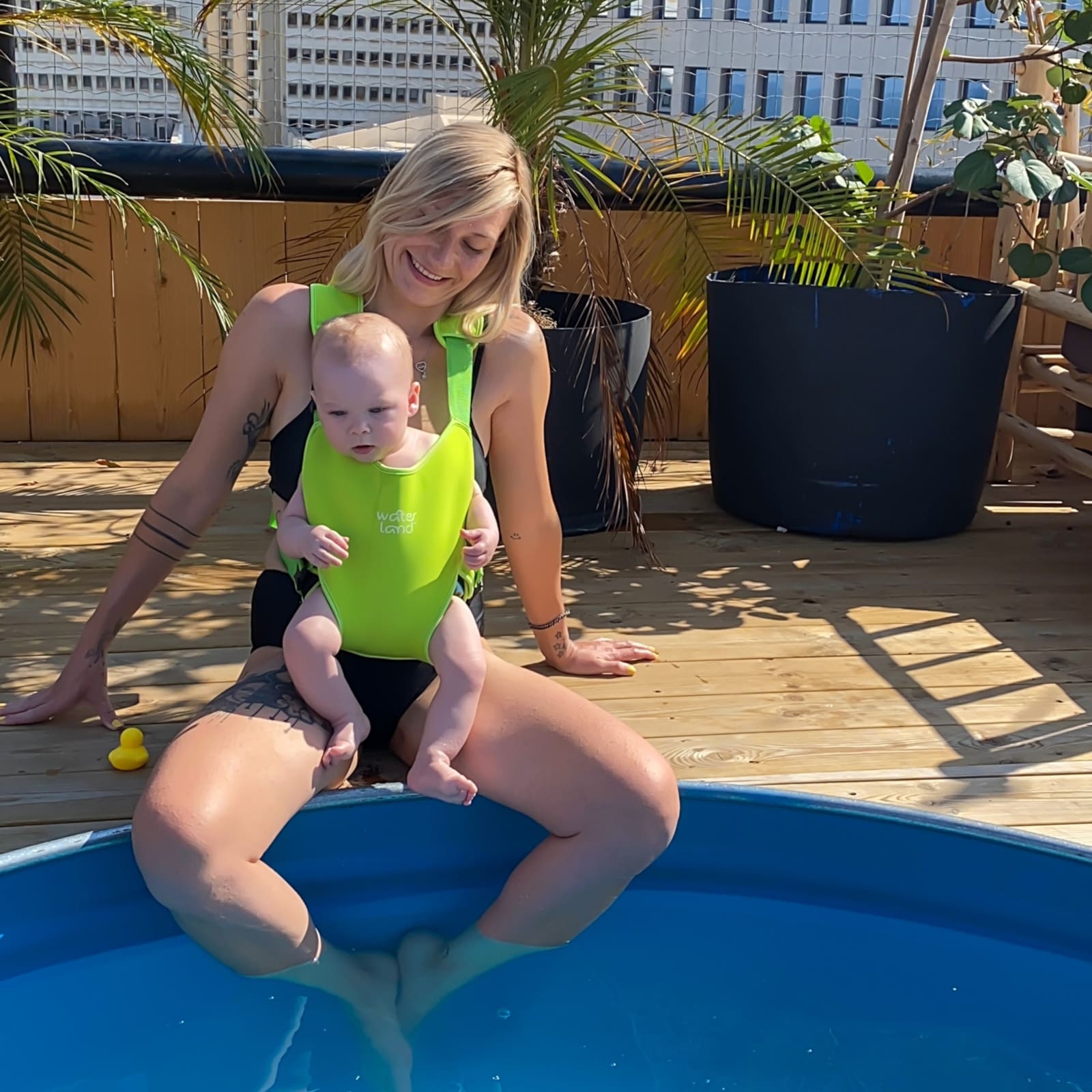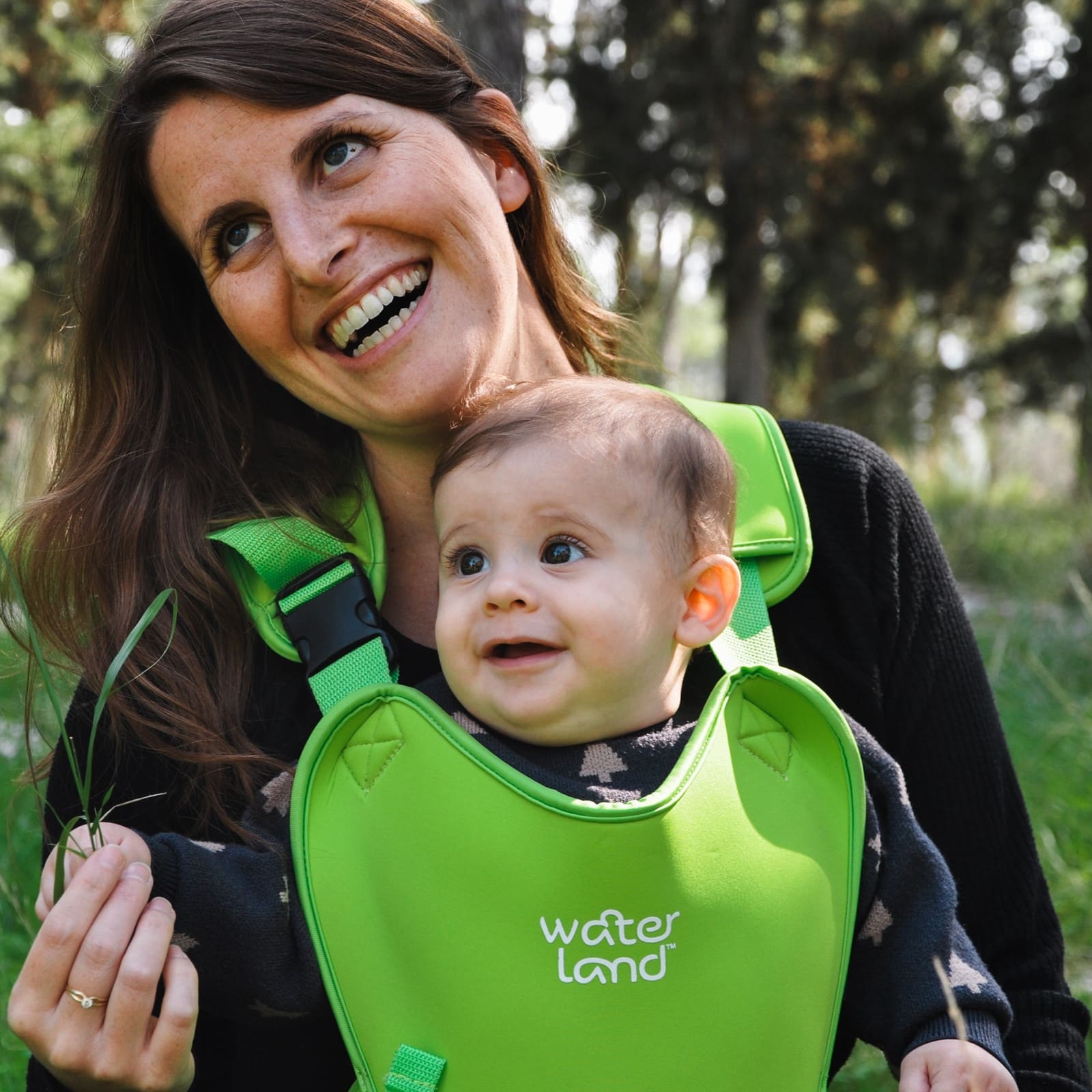 Die WaterLand Babytrage in Keylime Green wurde speziell entwickelt, damit du dein Baby sowohl im Wasser als auch an Land nah bei dir tragen kannst. Sie gibt dir die Hände frei und sorgt dafür, dass dein Kind sicher am Körper sitzt, während du dich frei bewegst — ideal beim Planschen, Schwimmen oder für entspannte Spaziergänge.