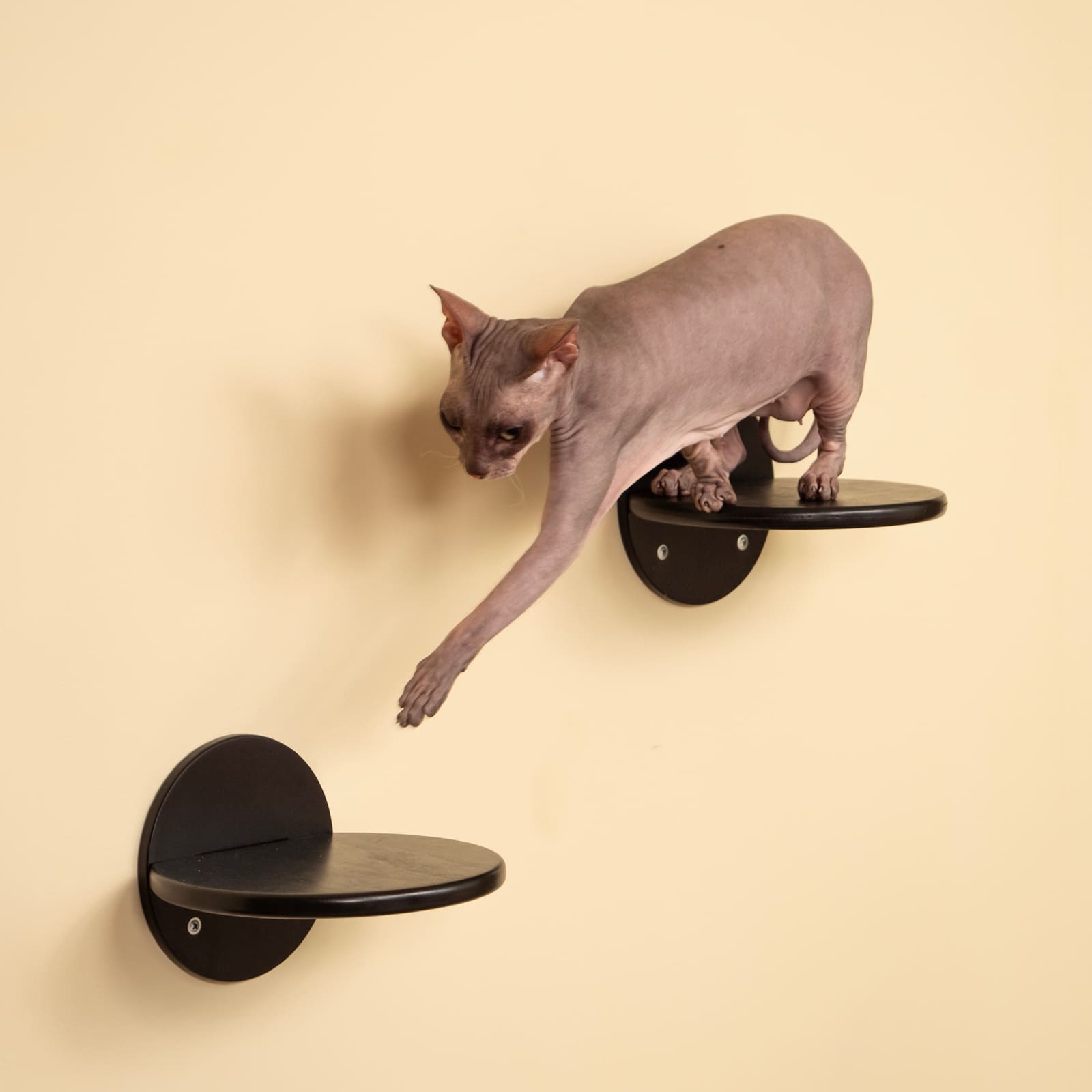 WOWHELPERCO 3 runde Stufen schwarz – stilvolle Wand-Treppe für Katzen