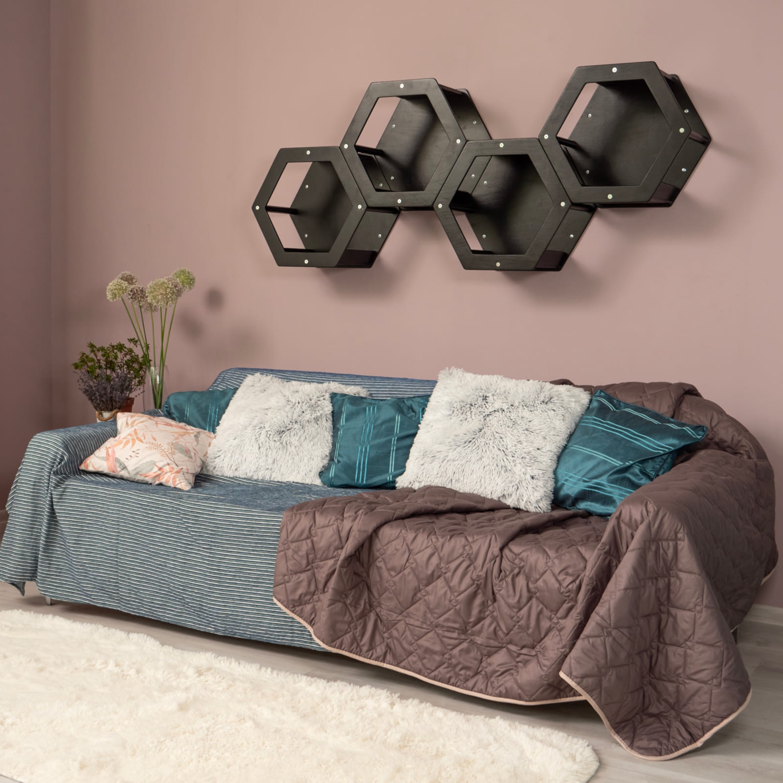Die vier Regale lassen sich flexibel in Reihenfolge und Hoehe montieren, sodass du das Wabenmuster optimal an deinen Raum anpassen kannst. Ob als vertikale Kletterwand oder als horizontale Relaxzone – die Moeglichkeiten sind vielfaeltig.