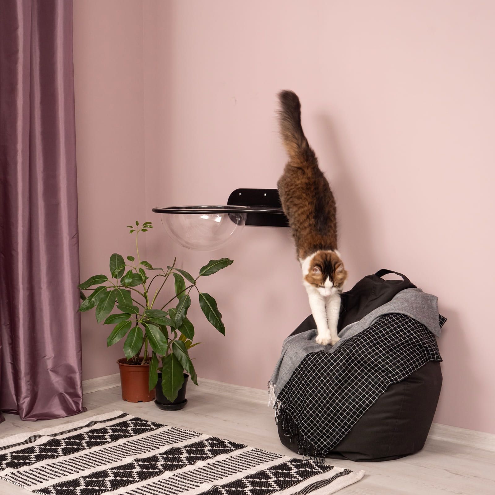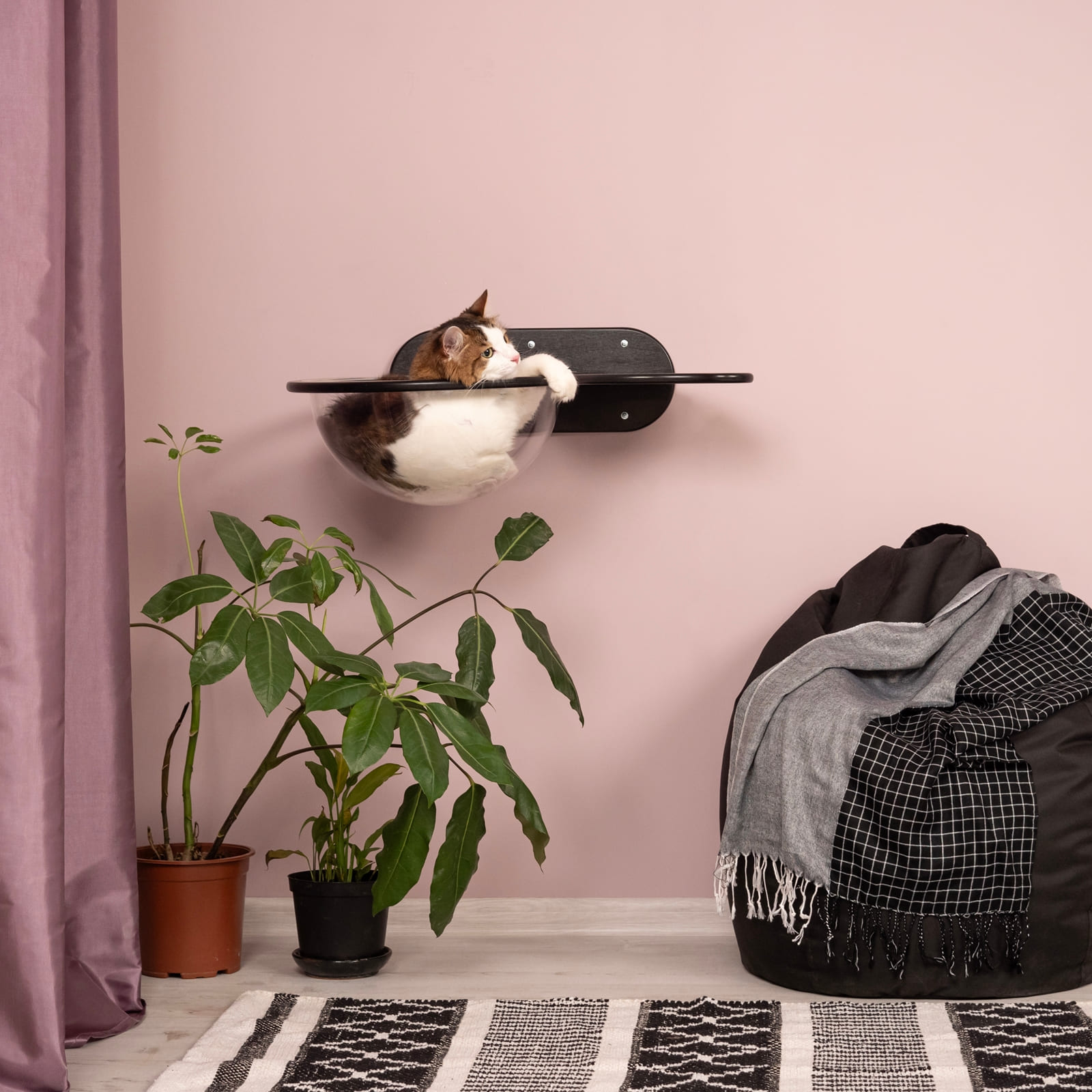 Dieses Hängeregal schafft eine geschützte Ecke, in der sich deine Katze zurückziehen kann, ohne von Kindern oder anderen Haustieren gestört zu werden. Ein eigener Rückzugsort hilft Stress zu reduzieren und das Wohlbefinden zu steigern.