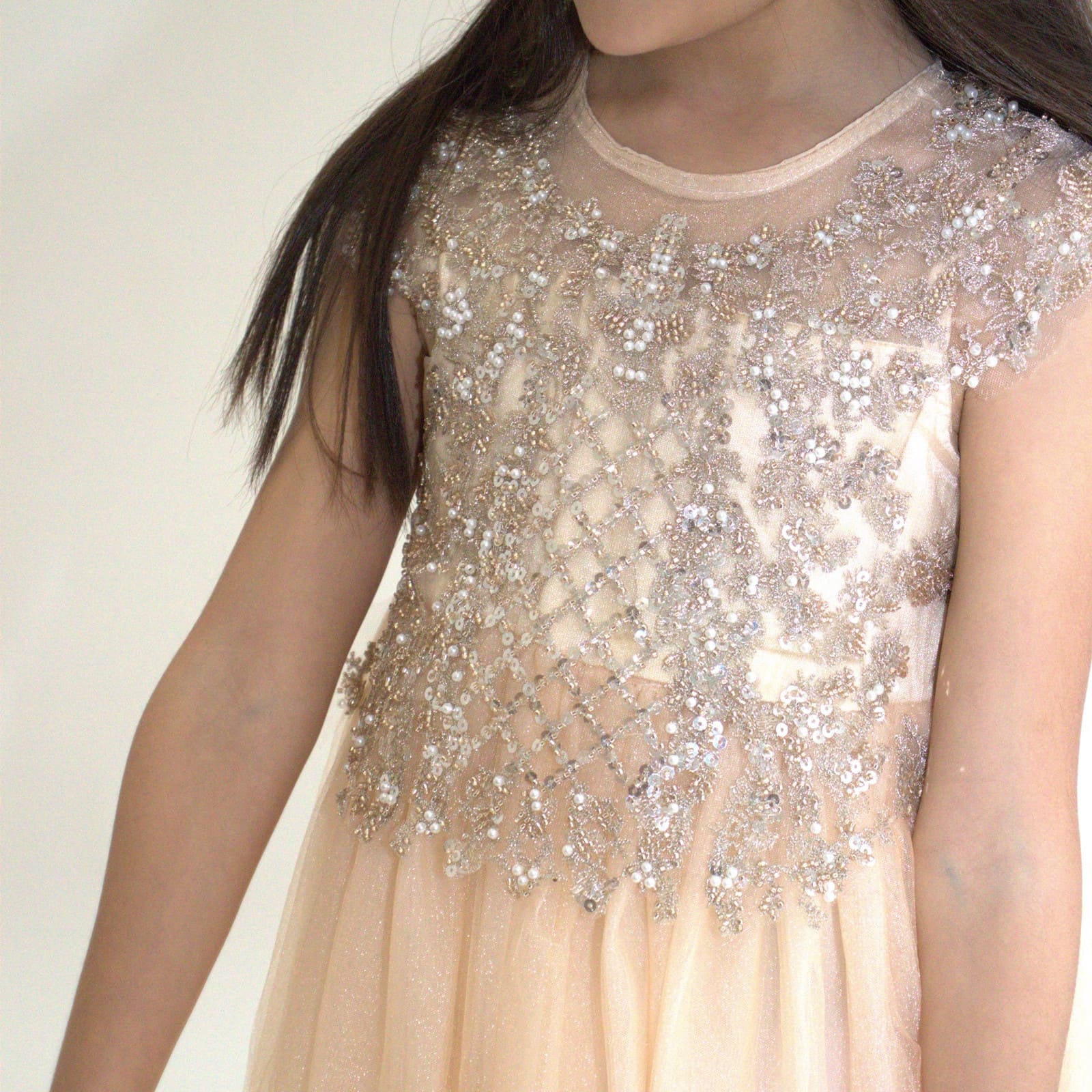 Das Design des Anabella-Kleids ist liebevoll gestaltet und setzt dezente Akzente ohne aufzutragen. Der leicht schimmernde Oberstoff und die freundliche Linienführung schaffen einen festlichen Look, der sowohl für Kindergeburtstage als auch für Hochzeiten bestens geeignet ist.