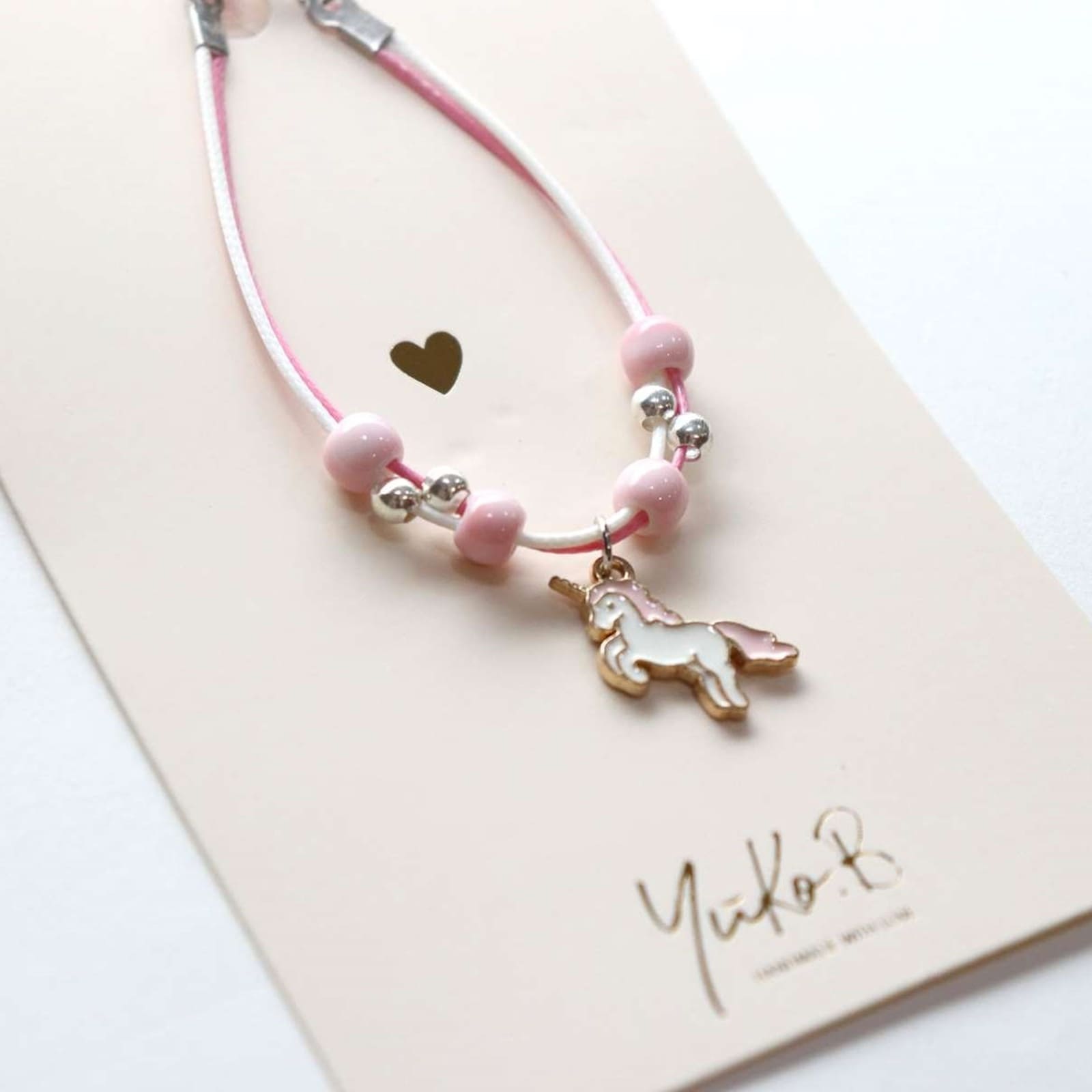 YUKO.B Kordelarmband Einhorn rosa – Magisches Kinderarmband