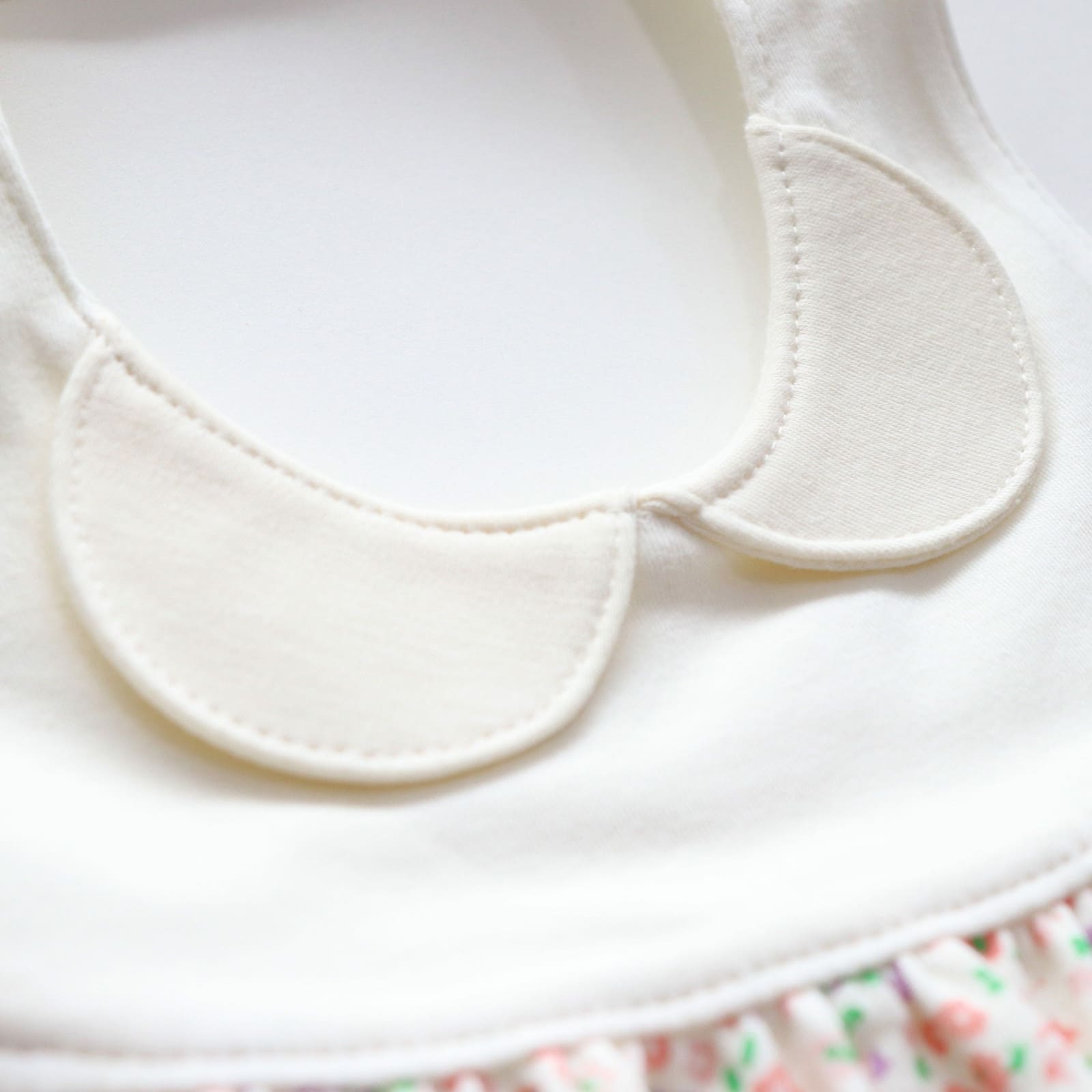 Die Form eines kleinen Kleides macht das Lätzchen besonders ansprechend und sorgt dafür, dass sich dein Kind beim Essen wohlfühlt. Die zarte rosa Farbe und liebevolle Details passen zu vielen Outfits und bringen eine spielerische Eleganz in jeden Essensmoment.