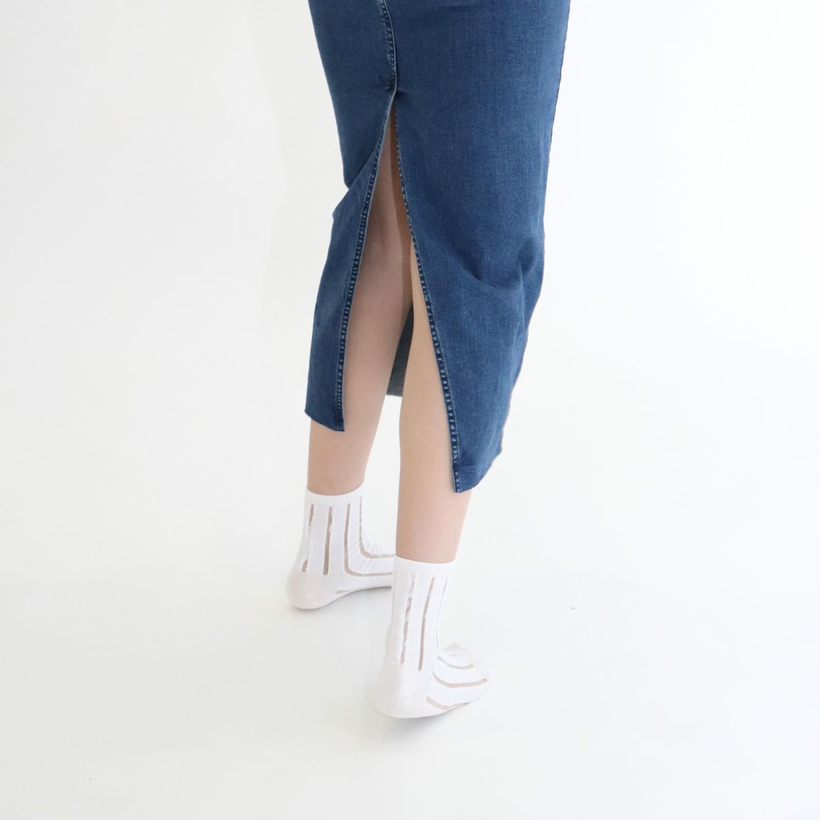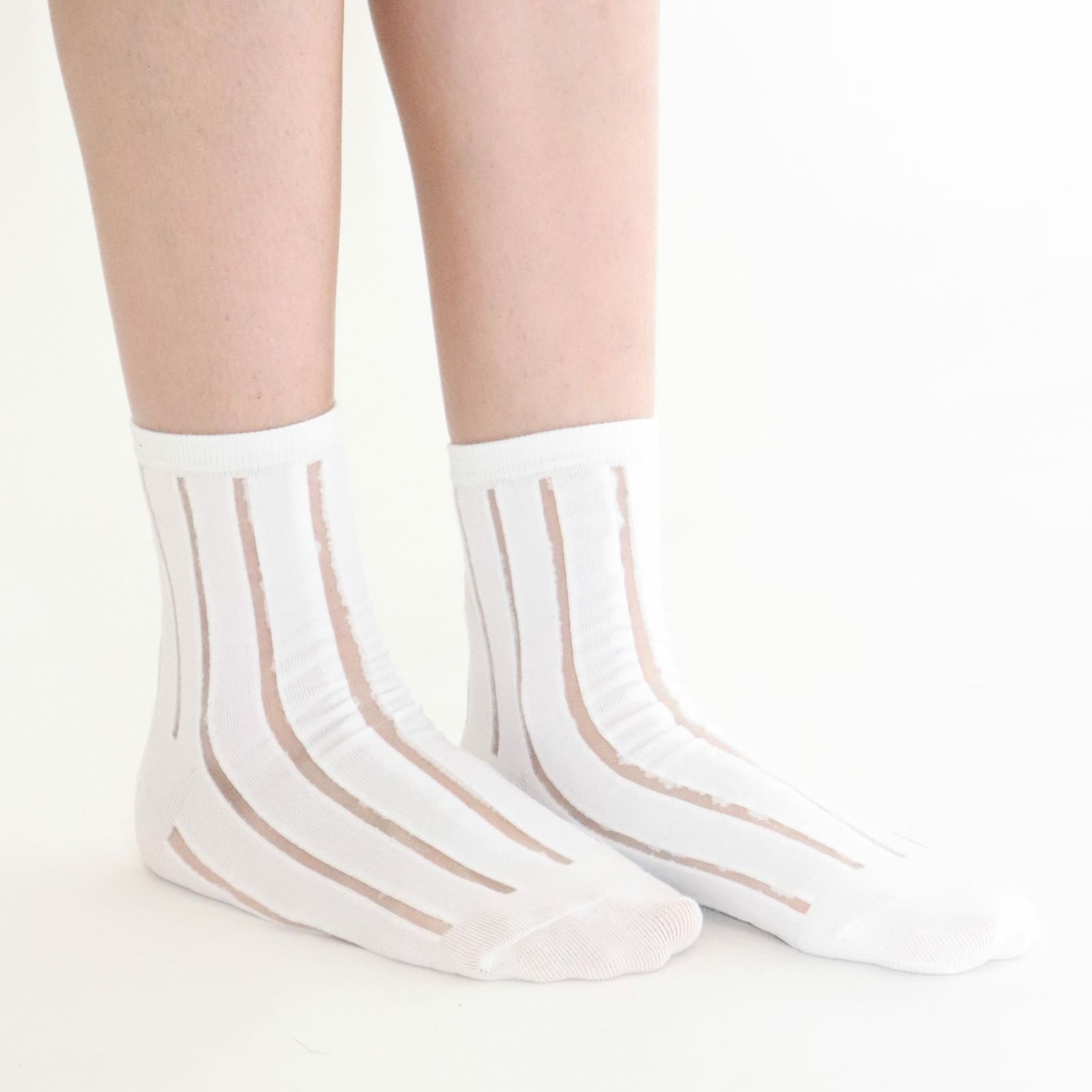 Die YUKO.B Socken AILEEN in klassischem Weiss verbinden schlichte Eleganz mit einem zarten, fast transparenten Finish. Das dezente Muster setzt einen feinen Akzent, der sowohl zu festlichen Outfits als auch zu casual Looks passt und dem Gesamtauftritt eine feminine Note verleiht.