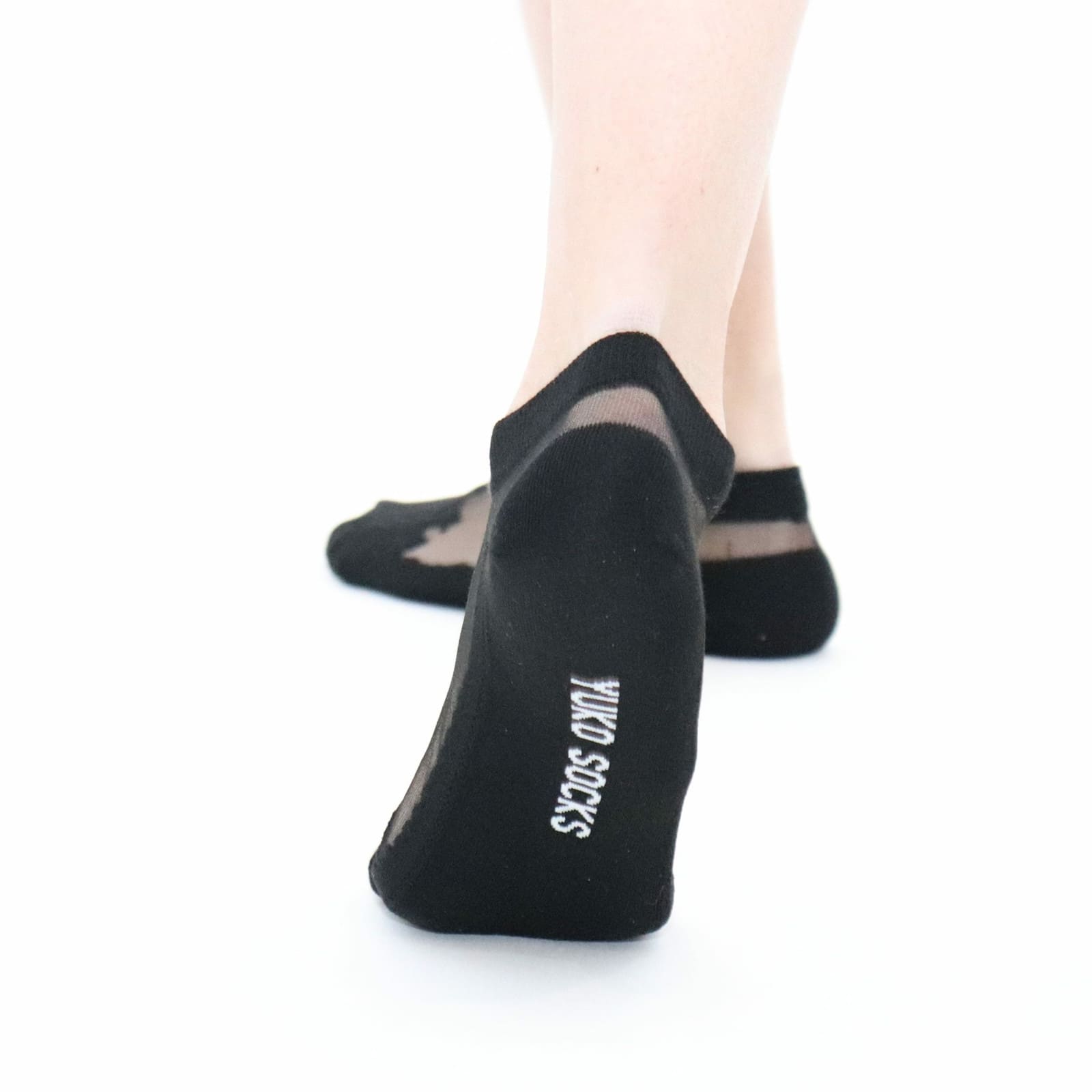 Die YUKO.B Socken DIVA in klassischem Schwarz wirken zart und doch präsent: ein transparenter Look, der jedem Outfit eine elegante Note verleiht. Das feine Material schmiegt sich sanft an den Fuss und sorgt für ein angenehm leichtes Tragegefühl ohne einzuschneiden. Ob zu High Heels oder Sneakers, die Socken setzen deine Beine stilvoll in Szene.
