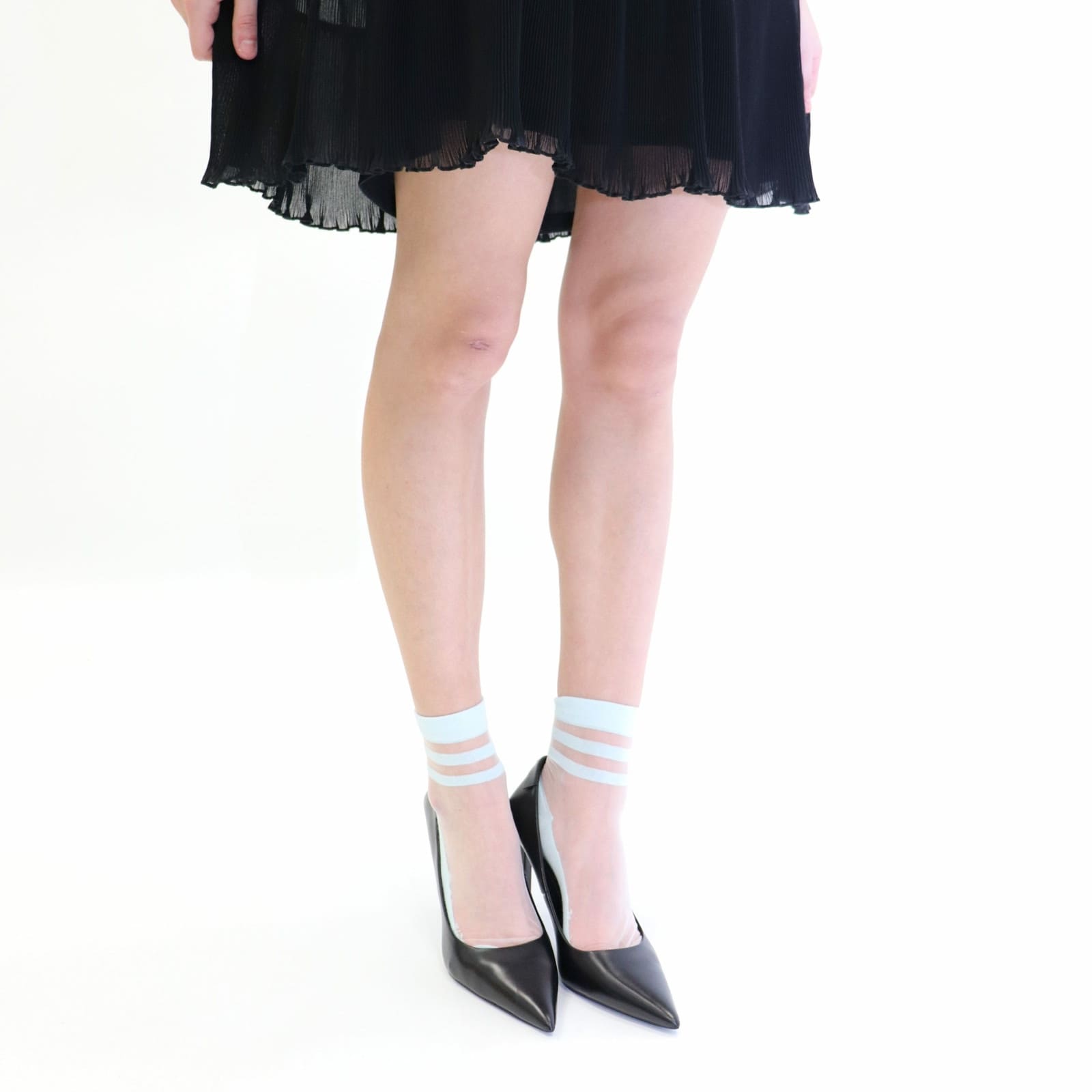 Die YUKO.B Socken NINA in zartem Hellblau verbinden ein feminines Design mit praktisch-komfortabler Verarbeitung. Ein feiner weisser Schleier verleiht den Socken eine dezente Raffinesse, die sowohl zu eleganten Schuhen als auch zu legeren Sneakern passt. Ideal, wenn du deinem Outfit einen frischen, unaufdringlichen Akzent geben willst.