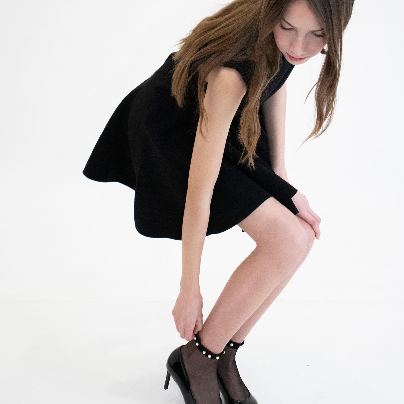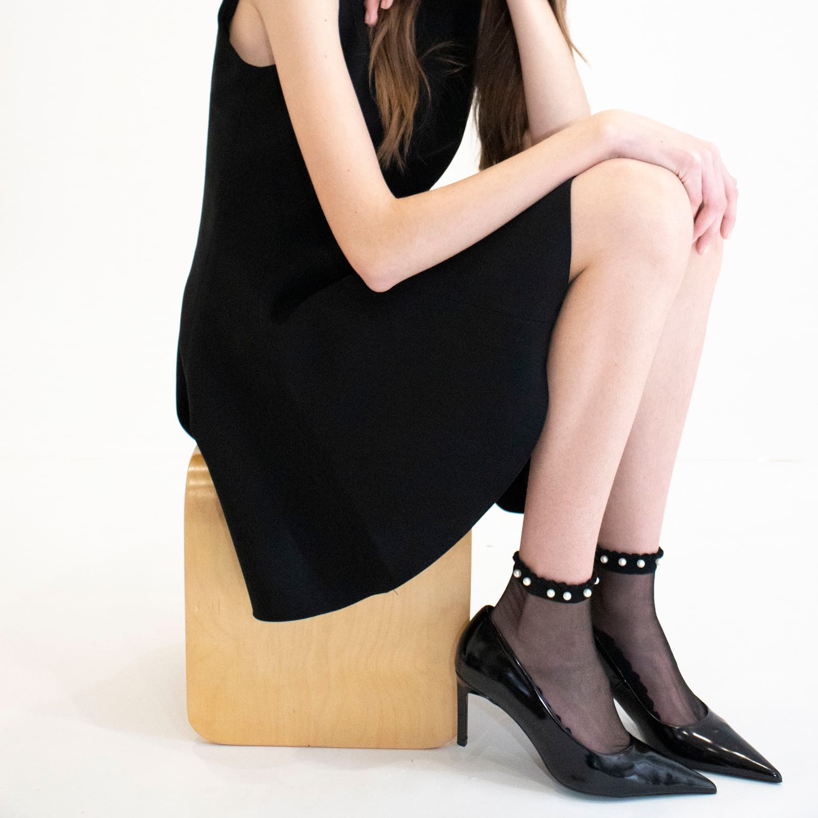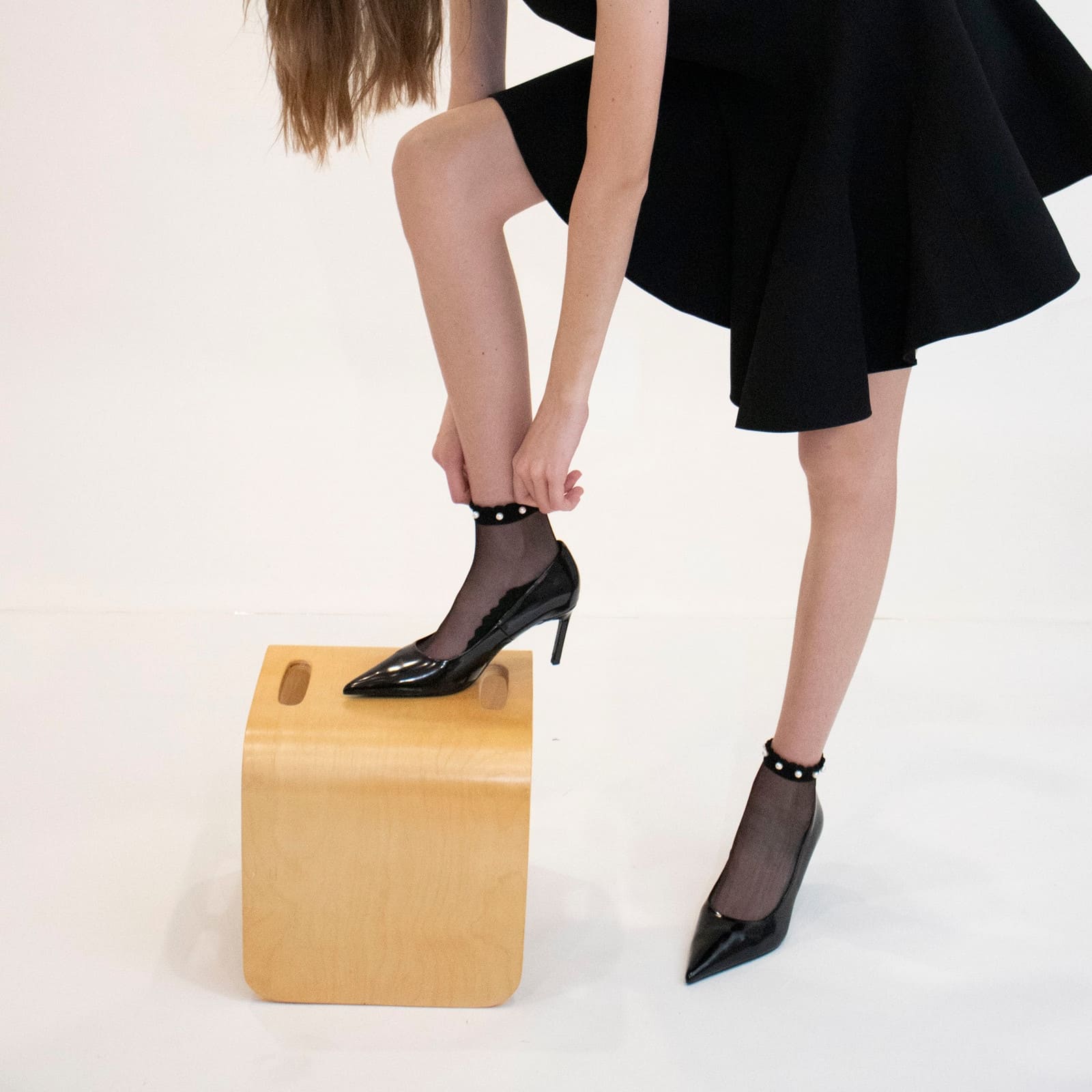 Die YUKO.B Socken PERLA bestechen durch ein feines, transparentes Gewebe, das einen leichten, schwarzen Schleier bildet. Dieses dezente Detail verleiht deinen Schuhen und Outfits sofort eine raffinierte Note, ohne aufdringlich zu wirken.