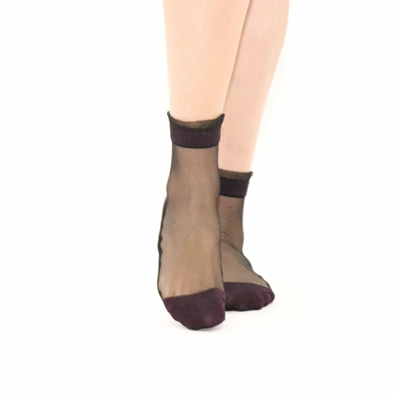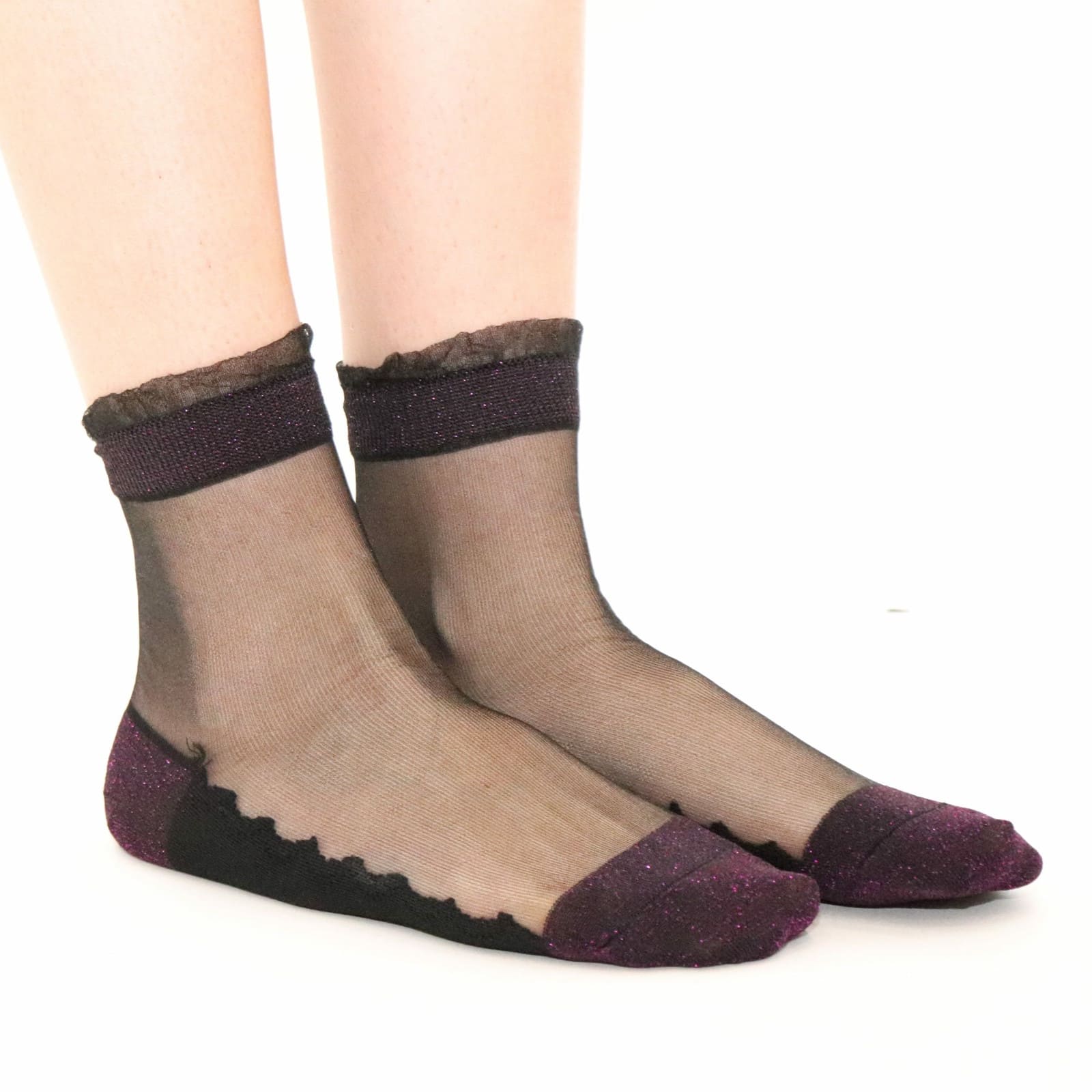 Die YUKO.B Socken SHINE in violett verbinden ein feines Design mit praktischem Tragekomfort. Ein zarter schwarzer Schleier verleiht den Socken eine elegante Note, die dein Outfit dezent aufwertet und vielseitig kombinierbar ist.