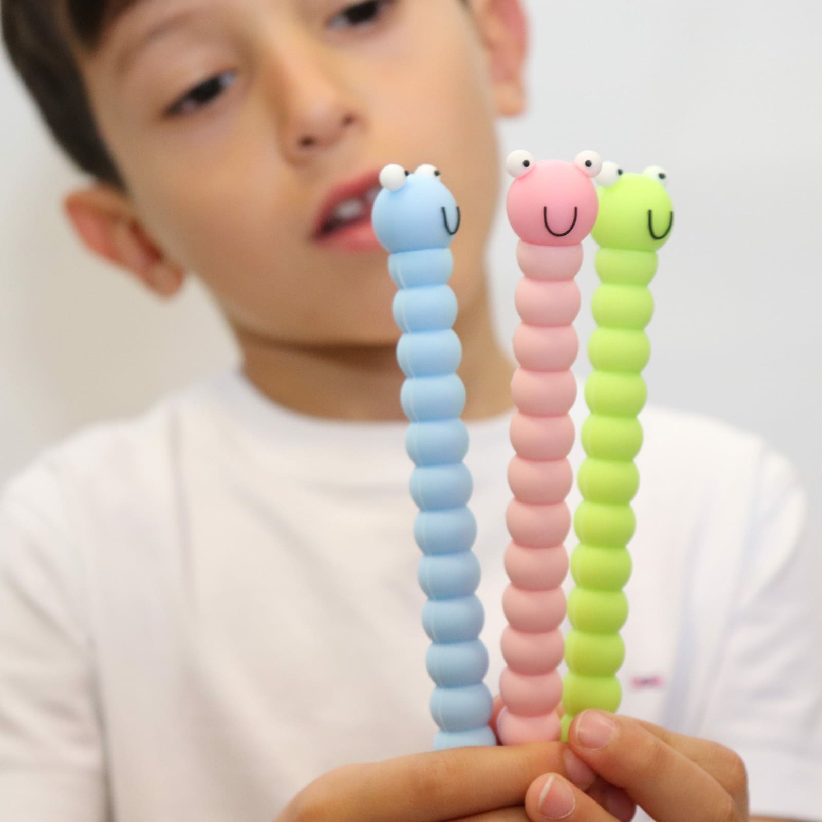 Die leicht flexible, wackelnde Raupenform sorgt für Bewegung beim Schreiben und verleiht dem Stift einen verspielten Charakter. Diese kleine Dynamik macht das Schreiben lebendiger und fördert die Freude am Umgang mit Stiften.
